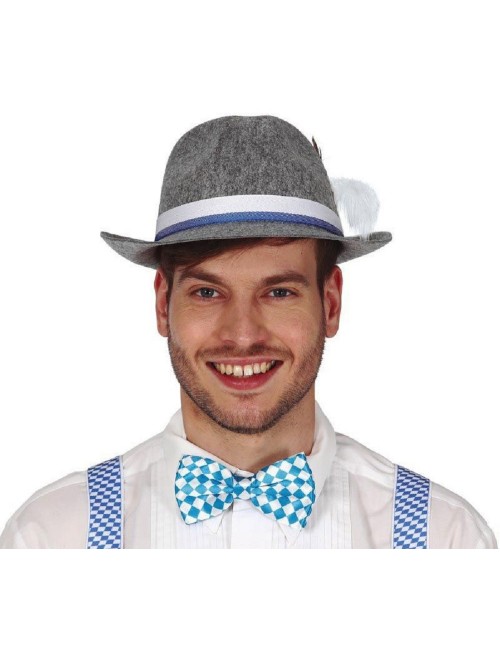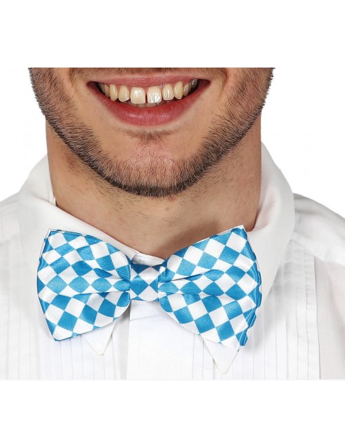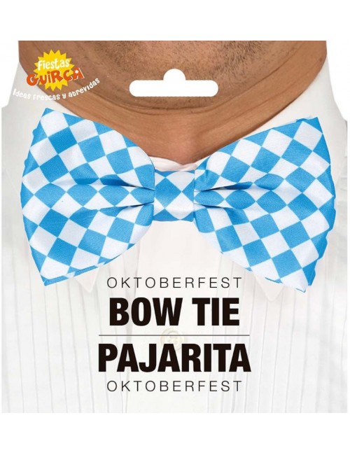 Papion alb-bleu Bavaria - Oktoberfest, prindere cu elastic la spate, material textil, 100% poliester, dimensiuni 12 x 8 cm.
