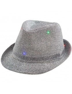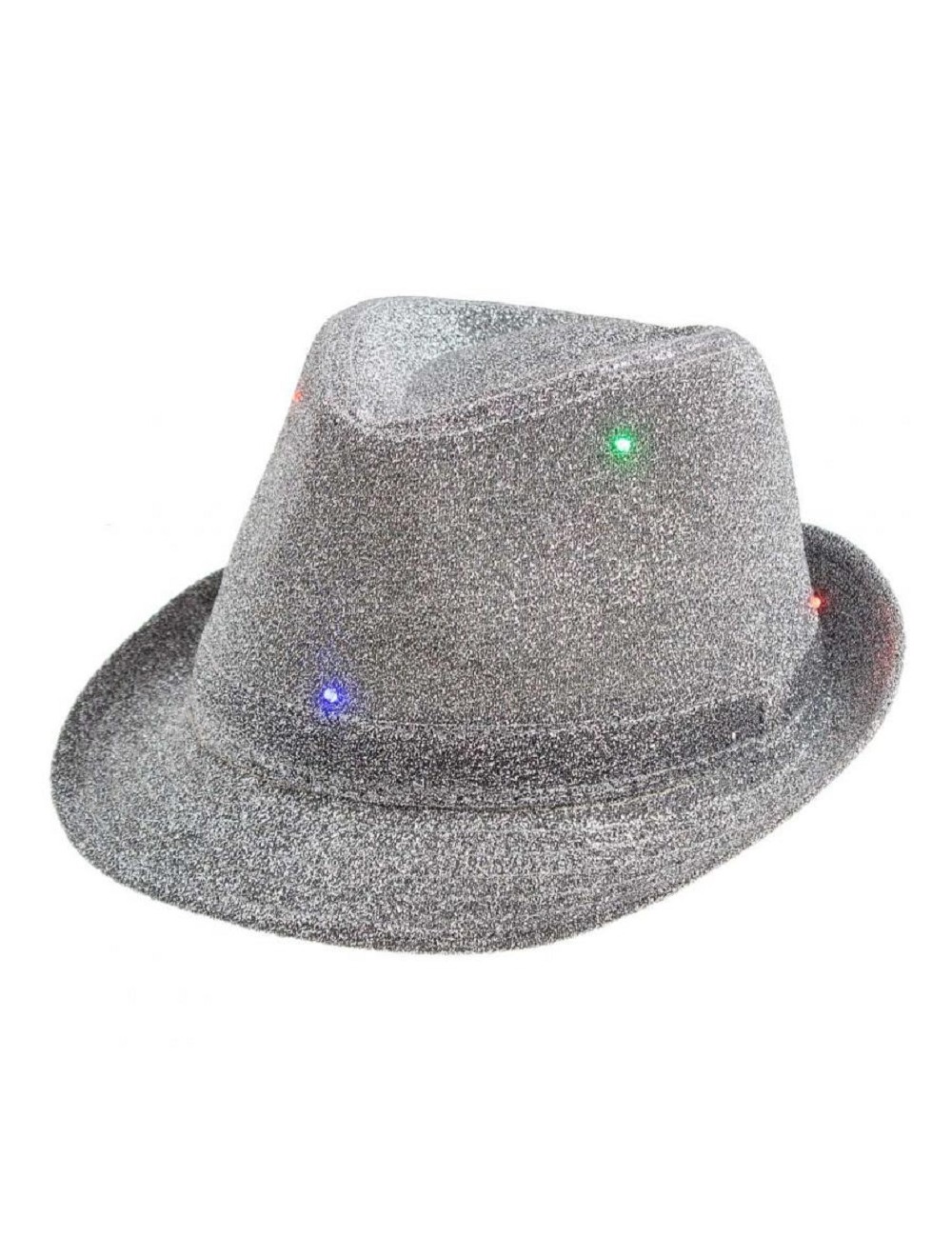 Palarie argintie, cu lumini, pentru adulti, circumferinta aprox 57 cm, inaltime 12 cm. Material: 100% poliester.