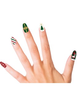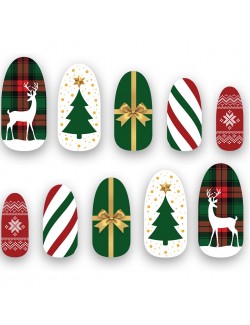 Set 10 unghii false, cu adeziv, cu motive de Craciun, fabricate din plastic, lungime aprox 2 cm.