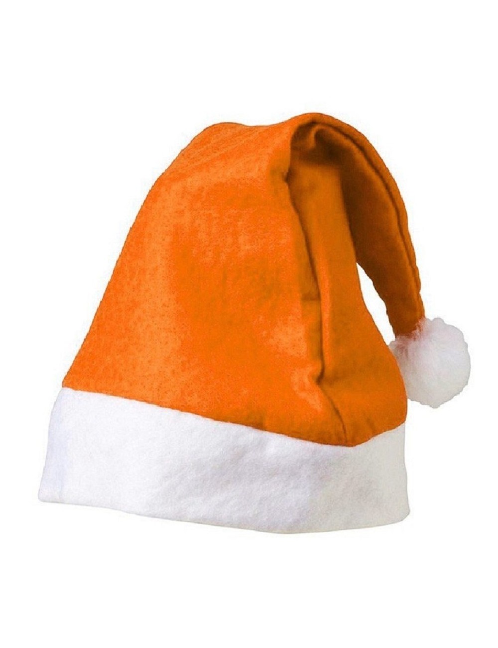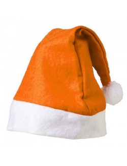 Caciulita Pitic, portocaliu-alb, lungime 32 cm, confectionata din polar portocaliu, cu garnitura alba si un mot alb, 100% poliester.