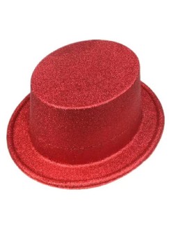 Palarie Joben rosu, din plastic cu sclipici, pentru adulti, circumferinta aprox. 58 cm, inaltime 12 cm.