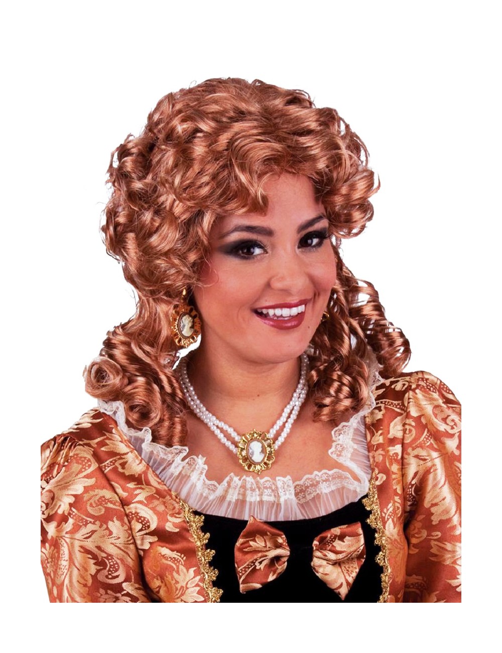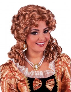 Peruca aramie cu codite, baroc-roccoco, pentru femei, fabricata din fire sintetice de buna calitate si are sistem de reglare pentru o potrivire perfecta.