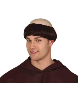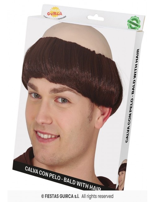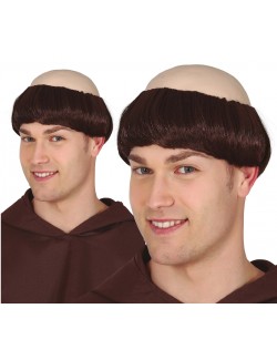 Peruca de Calugar franciscan (Tonsura), pentru adulti, cu chelie fabricata din latex si par saten din fire sintetice - poliester 100%.