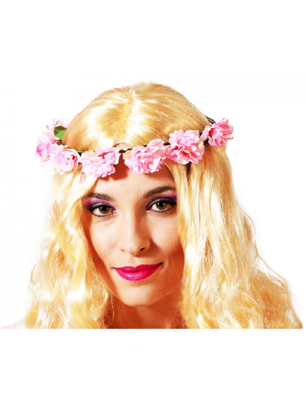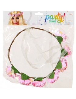 Coronita flori roz, 100% poliester, care adăuga o notă romantică și naturală costumului tău de zână, elf sau Hippie.