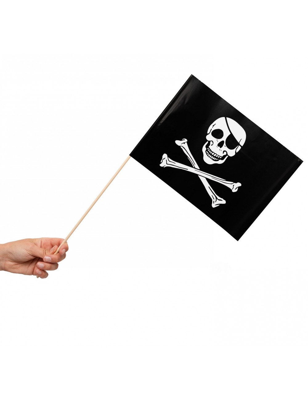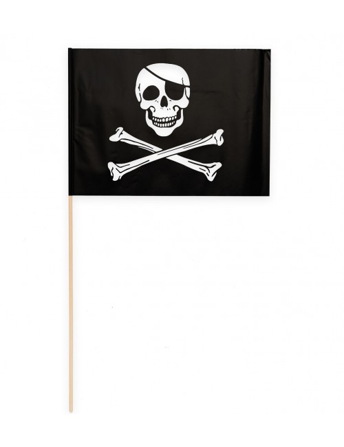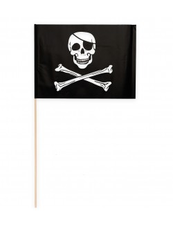 Set 10 stegulete Pirati, din hartie, dimensiuni steag 20 x 30 cm si suport din lemn cu lungime de 50 cm.