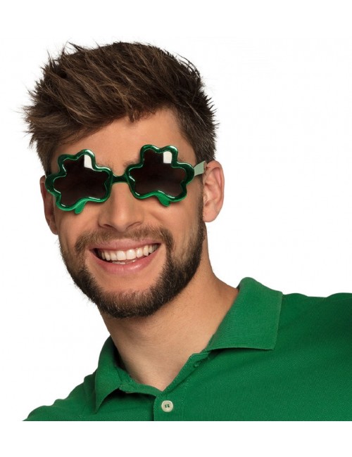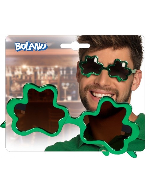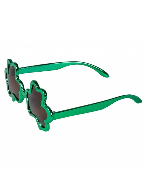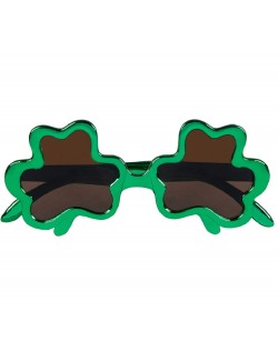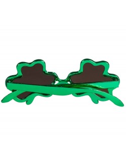 Ochelari Trifoi, party St. Patrick's day, rama din plastic verde-metalizat, lentile maro, accesoriu potrivit pentru petreceri.