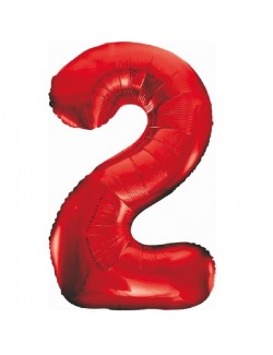 Balon folie rosie, Cifra 2, inaltime 85 cm, este potrivit pentru umplerea cu aer (nu pluteste) sau cu heliu (pluteste).
