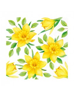 Set 20 servetele Narcise galbene, dimensiuni 33x33 cm (extins), din 3 straturi de hartie.