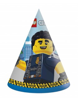 Set 6 Coifuri petrecere, Lego City, din carton, prindere cu elastic, perfecte pentru o petrecere tematica.