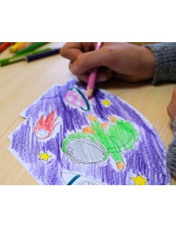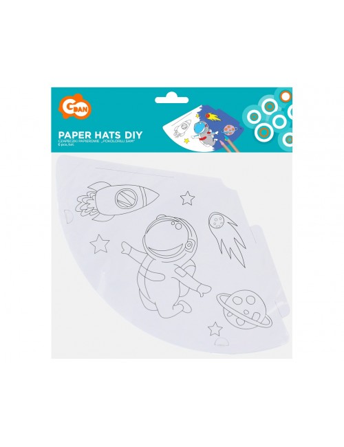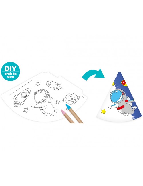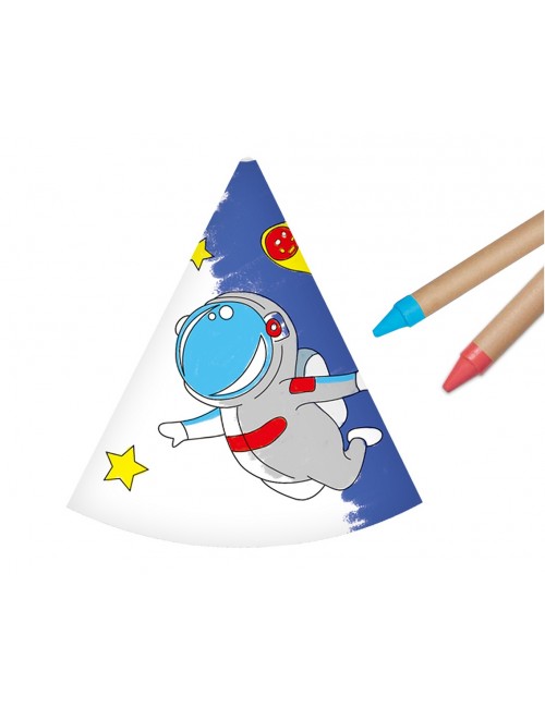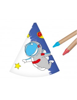 Set 6 Coifuri de colorat, Spatiu cosmic - Astronaut, inaltime 16 cm, se prind cu elastic sub barbie.