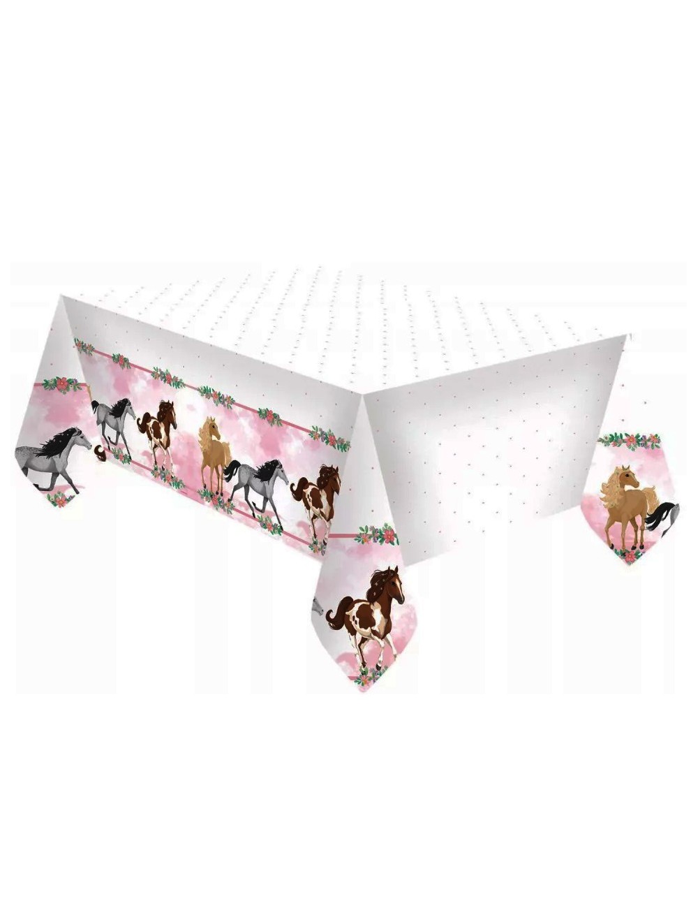 Fata de masa Caluti, 120 x 180 cm, PVC 100%, fond alb-roz, imprimeu multicolor, perfecta pentru o petrecere tematica.