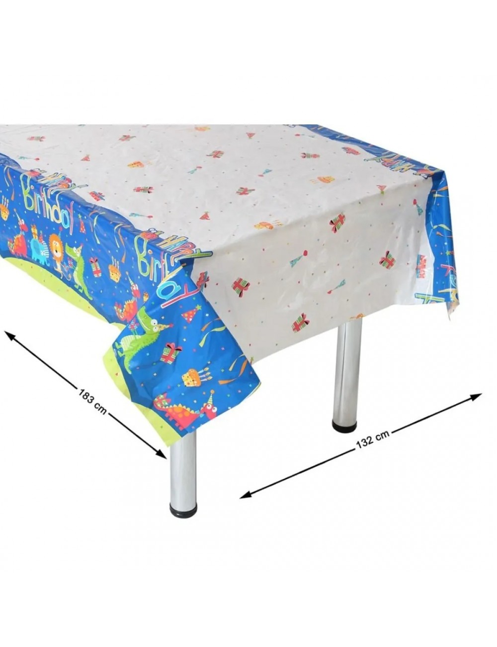Fata de masa Jungla Happy Birthday, dimensiuni 137 x 182 cm, din plastic, reutilizabila.
