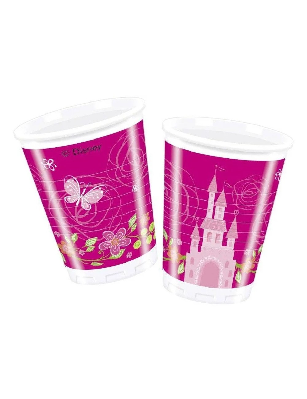 Set 8 pahare Princess Summer Palace, 200 ml, din plastic, de unica folosinta.