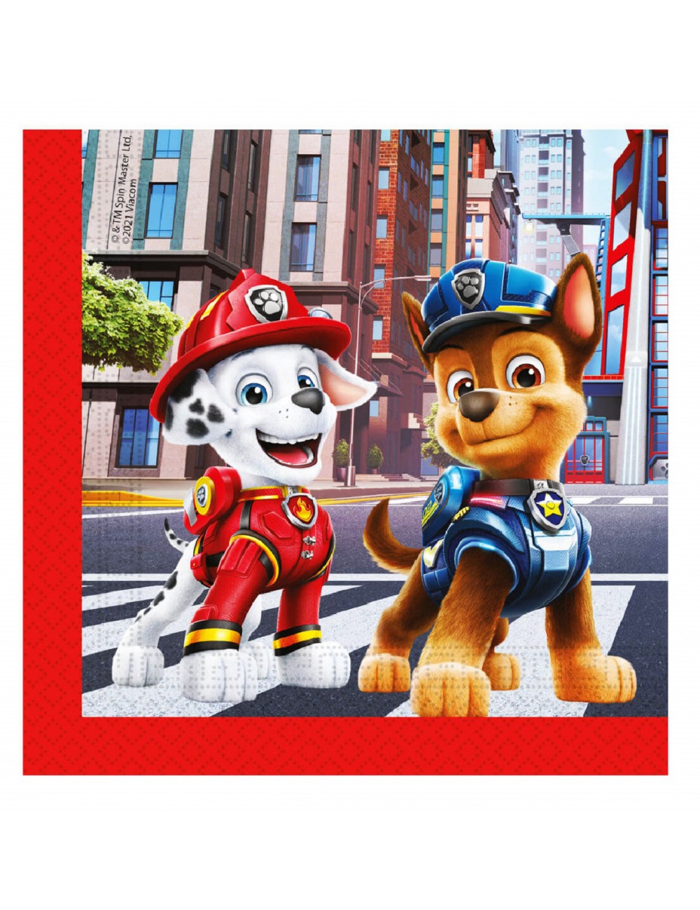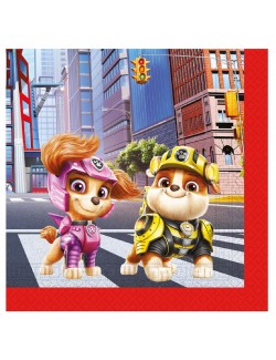 Set 20 servetele Paw patrol, imprimate cu Chase si Mashall, pe o parte si Skye si Rubble pe cealalta parte, dimensiuni 33 x 33 cm (extins), din 2 straturi de hartie, perfecte pentru petreceri de copii.