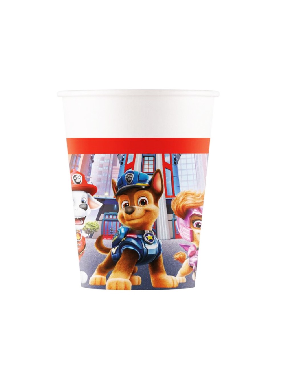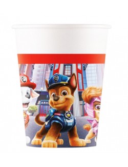Set 8 pahare Paw patrol, din carton, 200 ml, de unica folosinta, imprimate cu Chase, Marshall, Skye si Rubble.