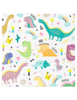 Set 20 servetele Dinozauri veseli, dimensiuni 33x33 cm - extins, din 2 straturi de hartie fina, imprimate cu diverse specii de dinozauri.