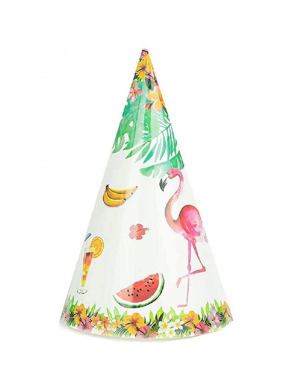 Set 6 coifuri Flamingo Summer party, din carton, prindere cu snur, inaltime 15 cm.