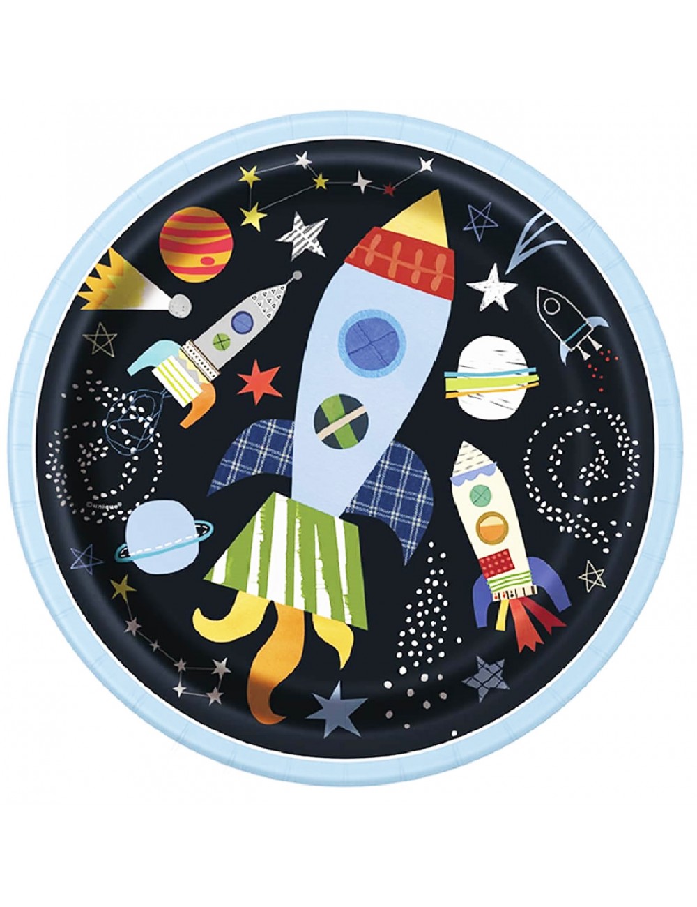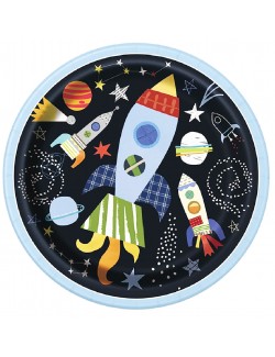 Set 8 farfurii Spatiu - Outer Space, diametru 22 cm, de unica folosinta, fabricate din carton, culori intense, materiale non-toxice.