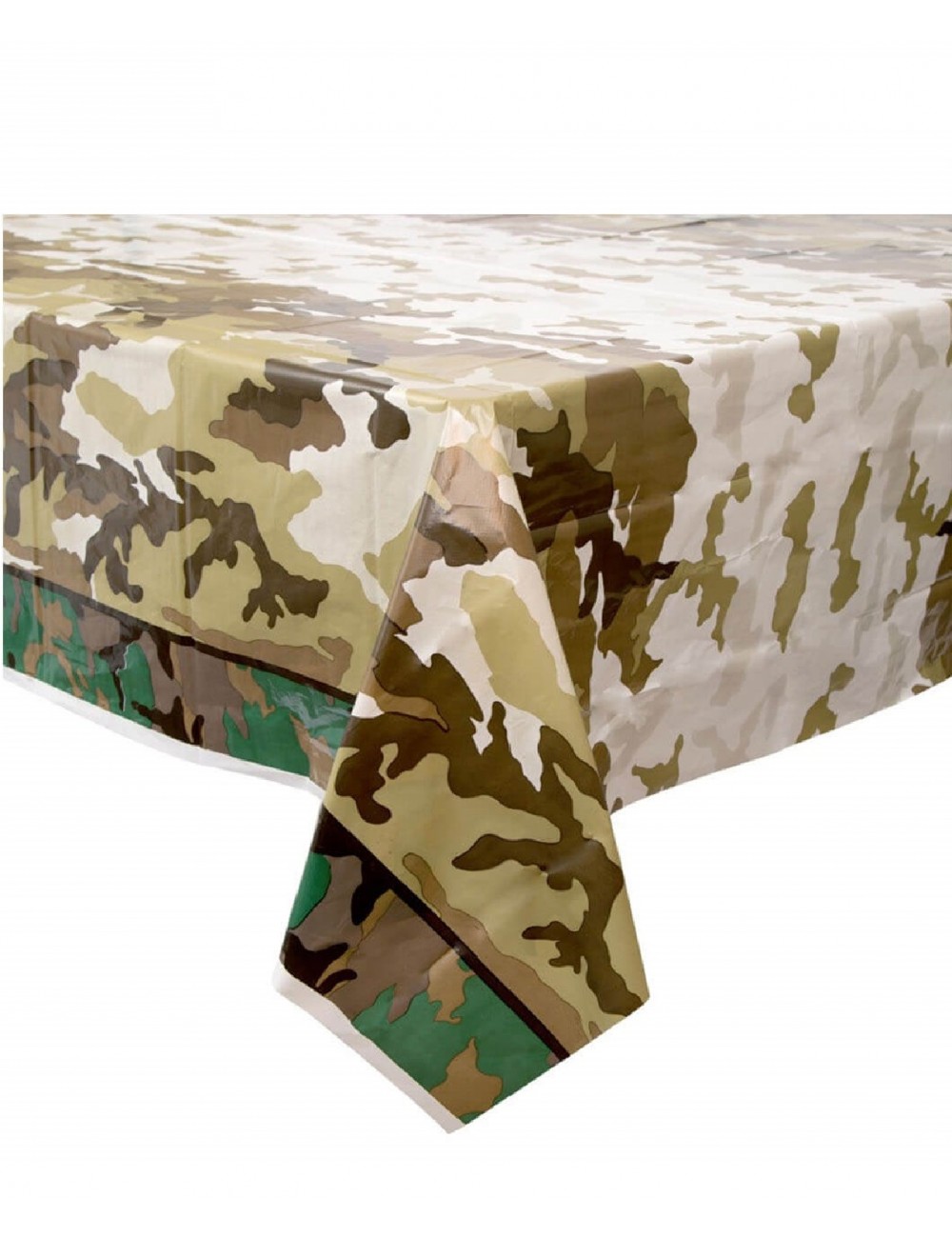 Fata de masa Camuflaj, din plastic, dimensiuni 137 x 213 cm, pentru petreceri. Este reutilizabila, impermeabila si se curata usor.