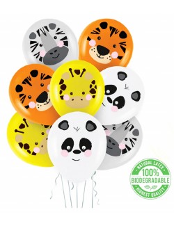 Set 12 baloane Safari Animale jungla, 30 cm, calitate premium, din cauciuc natural - latex- imprimate cu urs panda, tigru, zebra si girafa, multicolore.