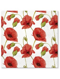 Set 20 servetele, Maci, 33 x 33 cm (extins), din 3 straturi de hartie, imprimeu rosu-verde, perfecte pentru petreceri.