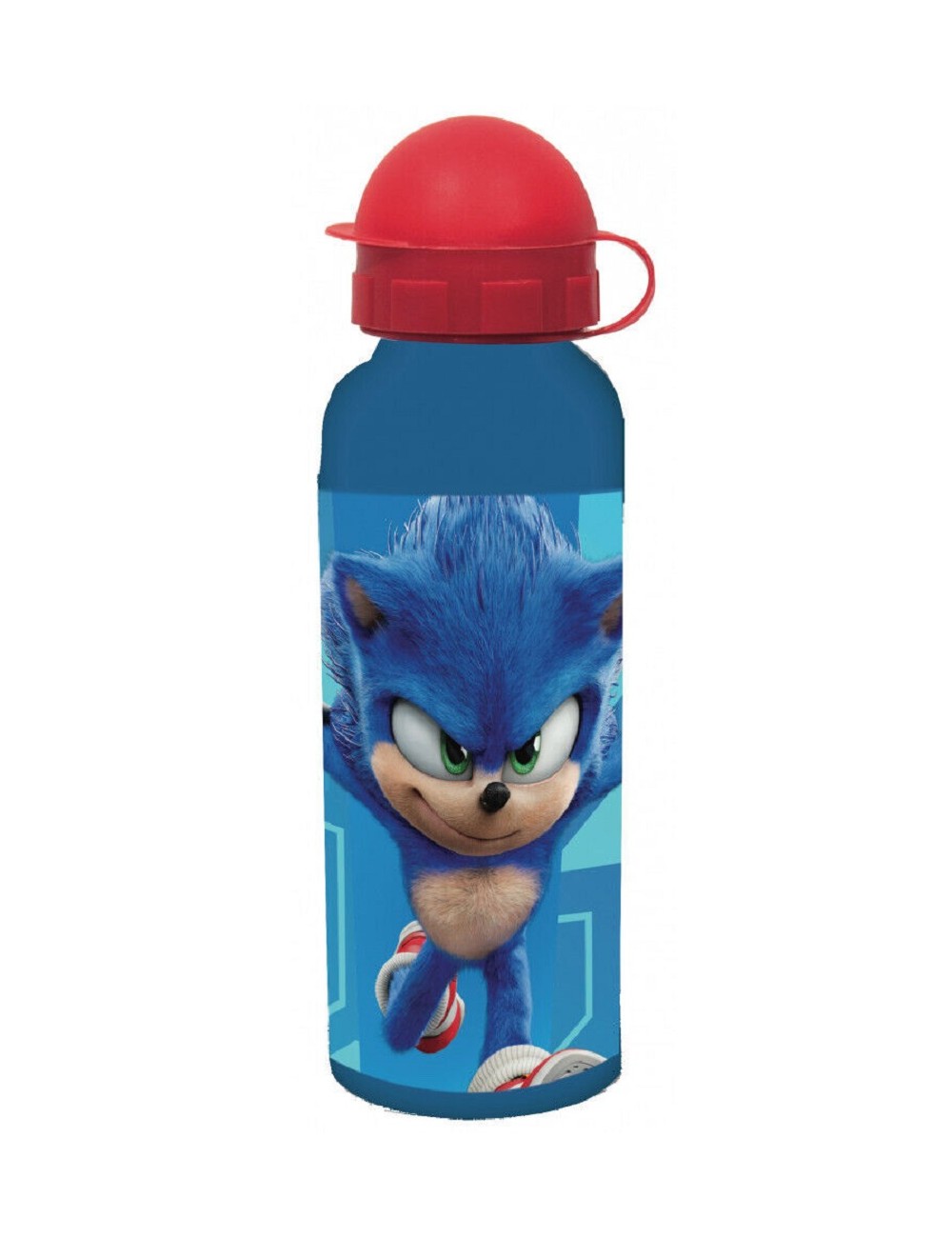 Recipient aluminiu pentru lichide, Ariciul Sonic, capacitate 520 ml, capac din plastic rosu .