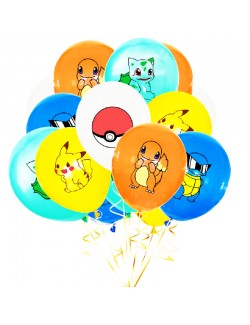 Set 6 baloane Pokemon, inaltime aprox. 28 cm, culori asortate, fabricate din latex, imprimate cu personaje ale celebrei serii de jocuri video.