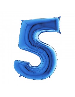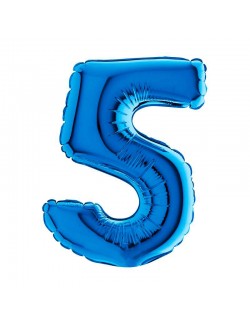 Balon folie Cifra 5, culoare albastra, inaltime 101 cm, este potrivit pentru umplerea cu aer (nu pluteste) sau cu heliu (pluteste).