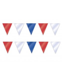 Ghirlanda multicolora, cu fanioane albe, rosii si albastre, lungime totala 10 metri, din plastic, dimensiuni fanion 31*25 cm.