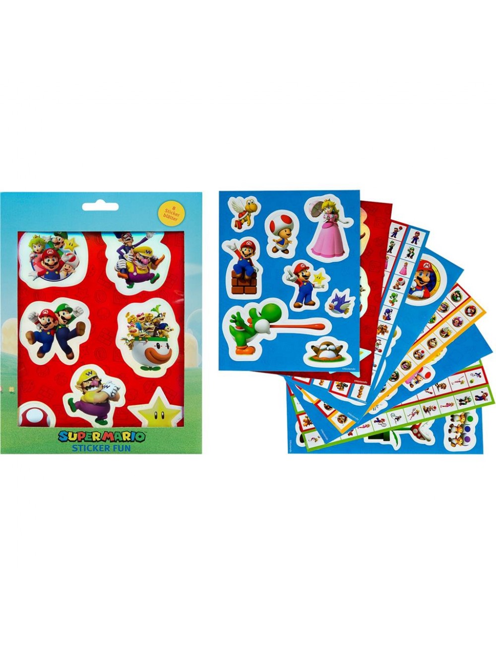 Set 8 planse cu autocolante Super Mario, contine abtibilduri de diferite dimensiuni cu personaje si alte elemente din jocurile video Nintendo Super Mario.
