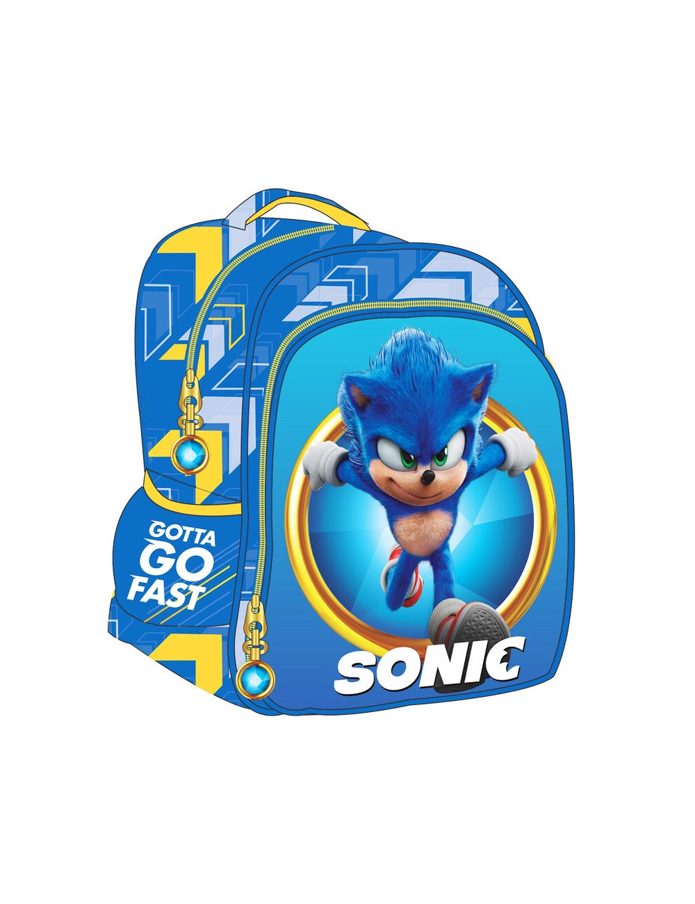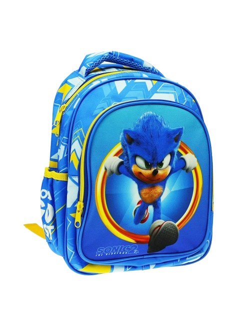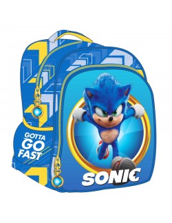Ghiozdan Sonic Run, dimensiuni 30 x 25x 15 cm, material rezistent, 2 compartimente inchise cu fermoar, 2 buzunare laterale, maner central si bretele buretate, reglabile