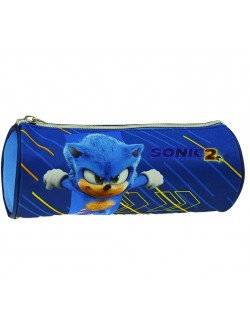 Penar cilindric, Ariciul Sonic Run, dimensiuni 21 x 8 cm, culoare albastra, material rezistent, poliester 100%, compartiment unic, inchidere cu fermoar.