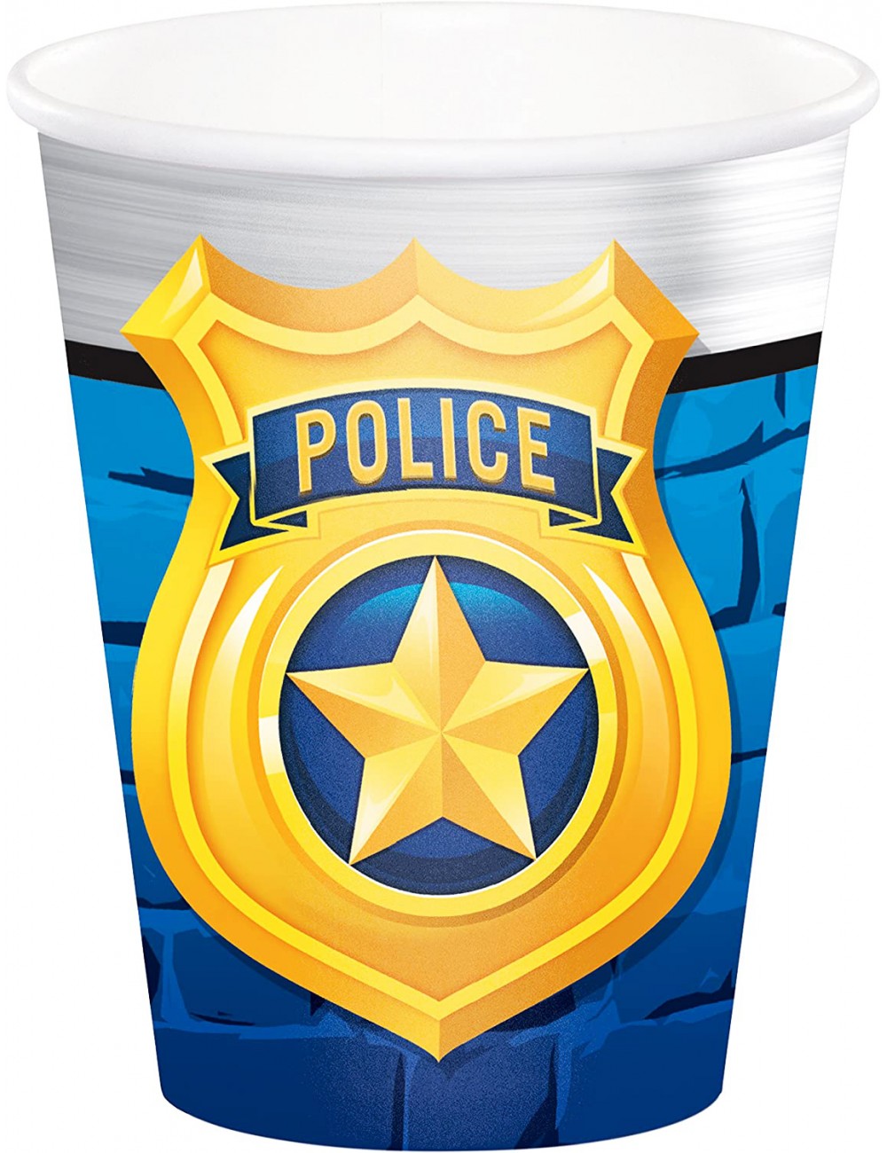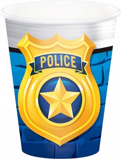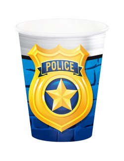 Set 8 pahare Politist party, 266 ml, din carton, de unica folosinta, imprimeu viu colorat.