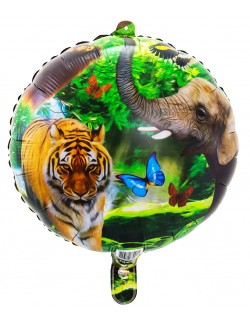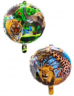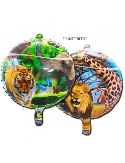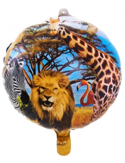 Balon folie Safary party, rotund, diametru de 43 cm, din folie metalica, imprimeu diferit fata-verso.