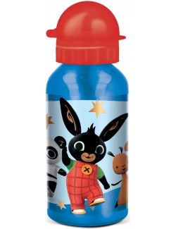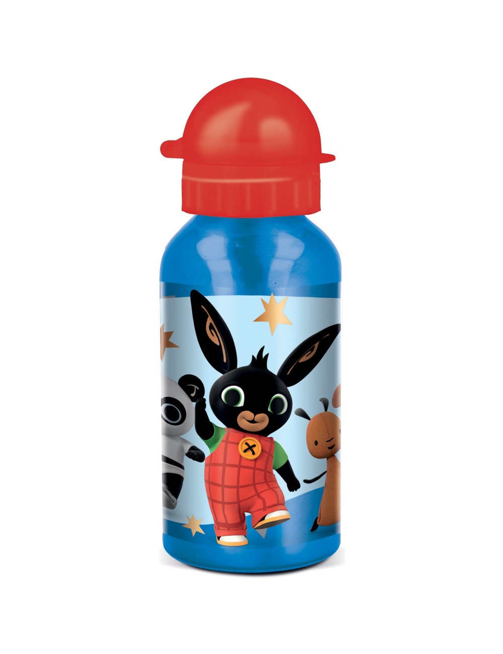 Recipient pentru lichide, Bing si prietenii, din aluminiu, culoare albastra, capac din plastic rosu, capacitate 500 ml.