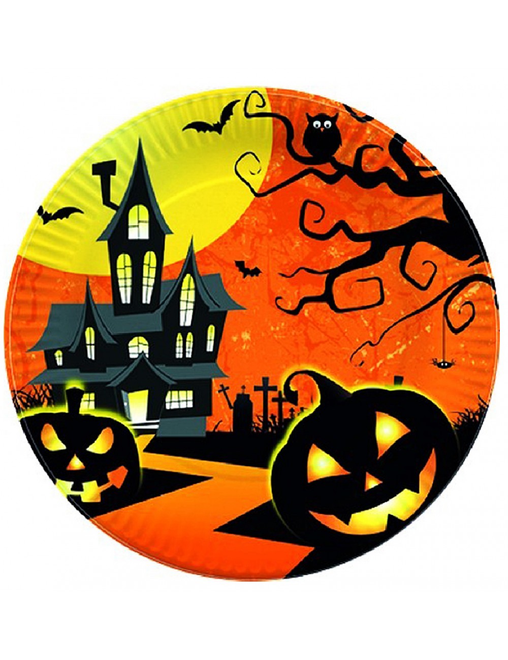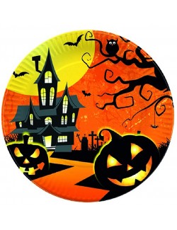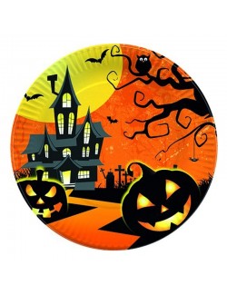 Set 10 farfurii Halloween Castel bantuit, 23 cm, de unica folosinta, fabricate din carton, nu contine plastic, special pentru petrecerea de Halloween.