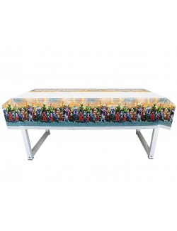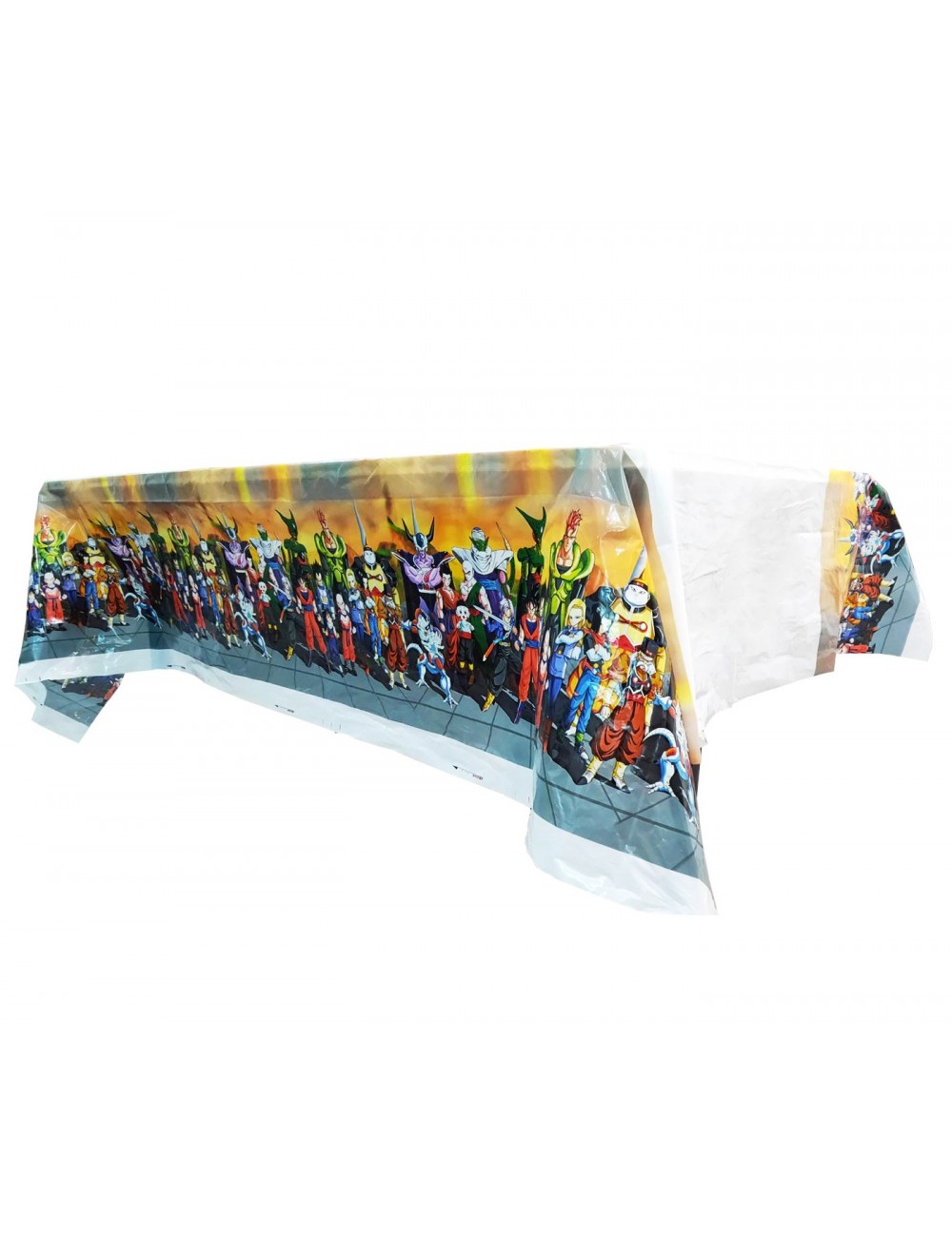 Fata de masa Dragon Ball, dimensiuni 108 x 180 cm, din plastic, imprimeu multicolor cu personaje Dragon Ball Z.