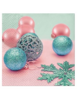 Set 20 servetele Globuri Craciun, dimensiuni 33 x 33 cm (extins), din 3 straturi de hartie fina, culori pastelate.