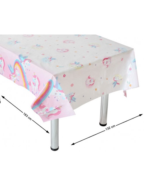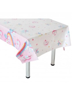 Fata de masa cu Unicorni, dimensiuni 132 x 183 cm, din plastic, multicolora, perfecta pentru petreceri tematice.