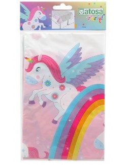 Fata de masa Unicorni, dimensiuni 132 x 183 cm, din plastic, multicolora, perfecta pentru petreceri tematice.