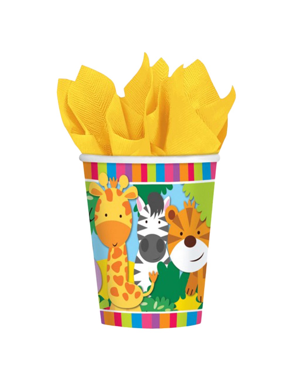 Set 8 pahare carton, Animale Jungla, 200 ml, de unica folosinta, inaltime 9 cm, potrivite pentru o petrecere tematica.