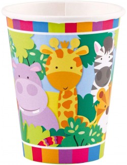 Set 8 pahare carton, Animale Jungla, 200 ml, de unica folosinta, potrivite pentru o petrecere tematica.