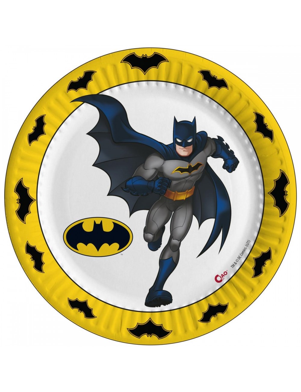 Set 8 farfurii petrecere, Batman, diametru 23 cm, de unica folosinta, fabricate din carton, fara plastic, imprimeu multicolor.