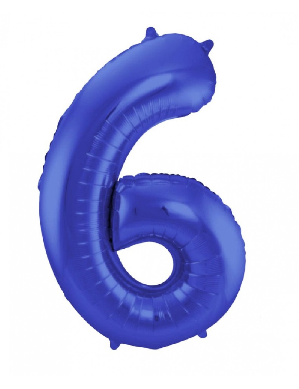 Balon folie, Cifra 6 albastru, inaltime aprox. 86 cm (dupa umflatr), este potrivit pentru umplerea cu aer (nu pluteste) sau cu heliu (pluteste).