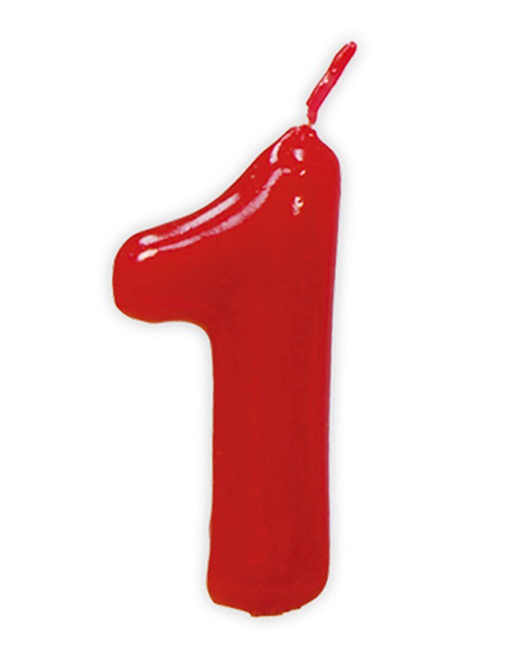 Lumanare rosie, Cifra 1, fabricata din parafina, inaltime lumanare - aprox. 5,5 cm, fixata pe un suport din plastic.
