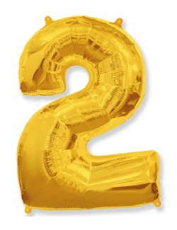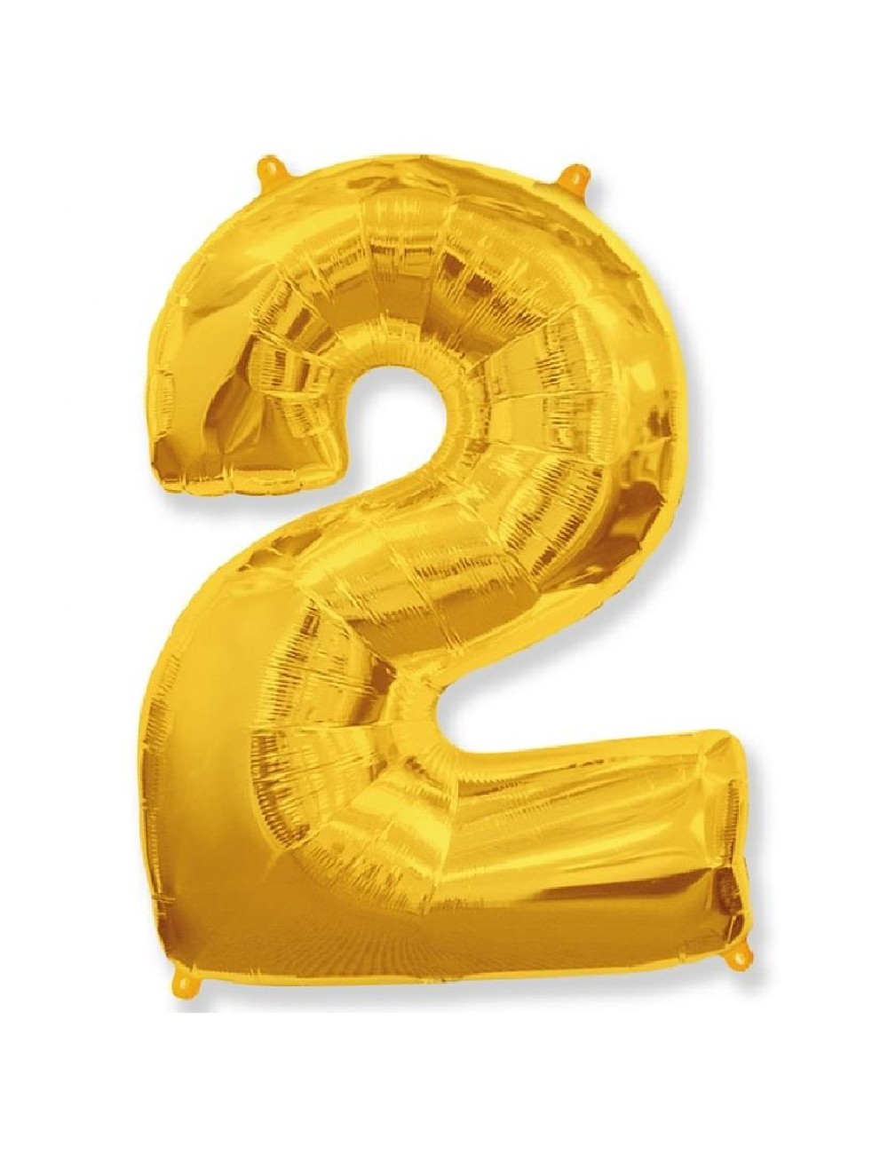 Balon folie aurie, Cifra 2, inaltime 85 cm, este potrivit pentru umplerea cu aer (nu pluteste) sau cu heliu (pluteste).
