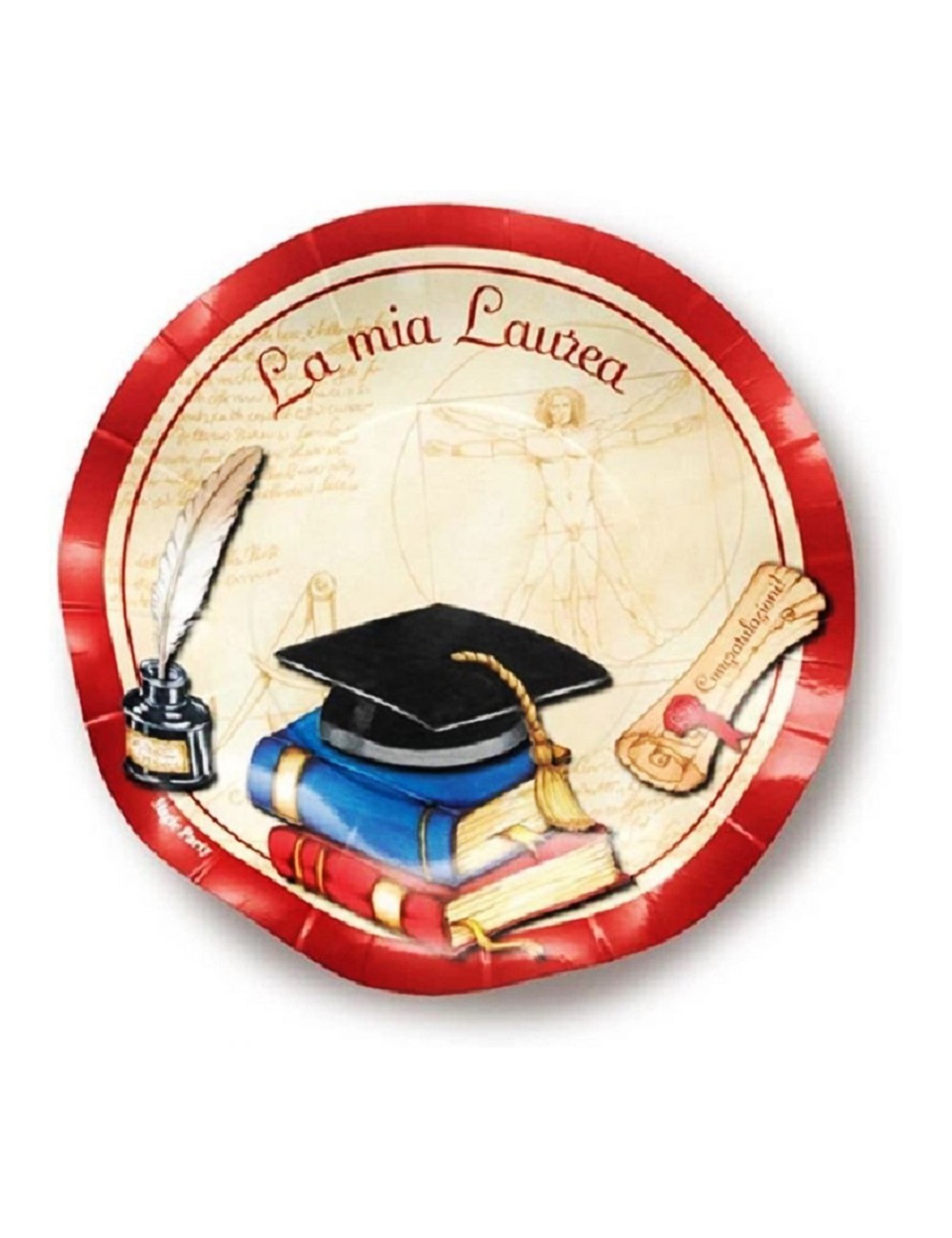 Set 10 farfurii Party absolvire - La Mia Laurea, rotunde, diametru 21 cm, de unica folosinta, fabricate din carton, nu contin plastic.