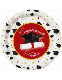 Set 8 farfurii, DoctorI Party Absolvire, rotunde, diametru 23 cm, de unica folosinta, fabricate din carton, nu contin plastic.