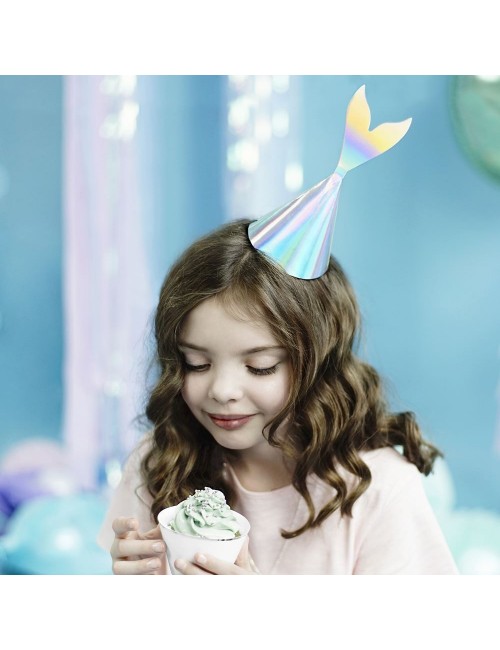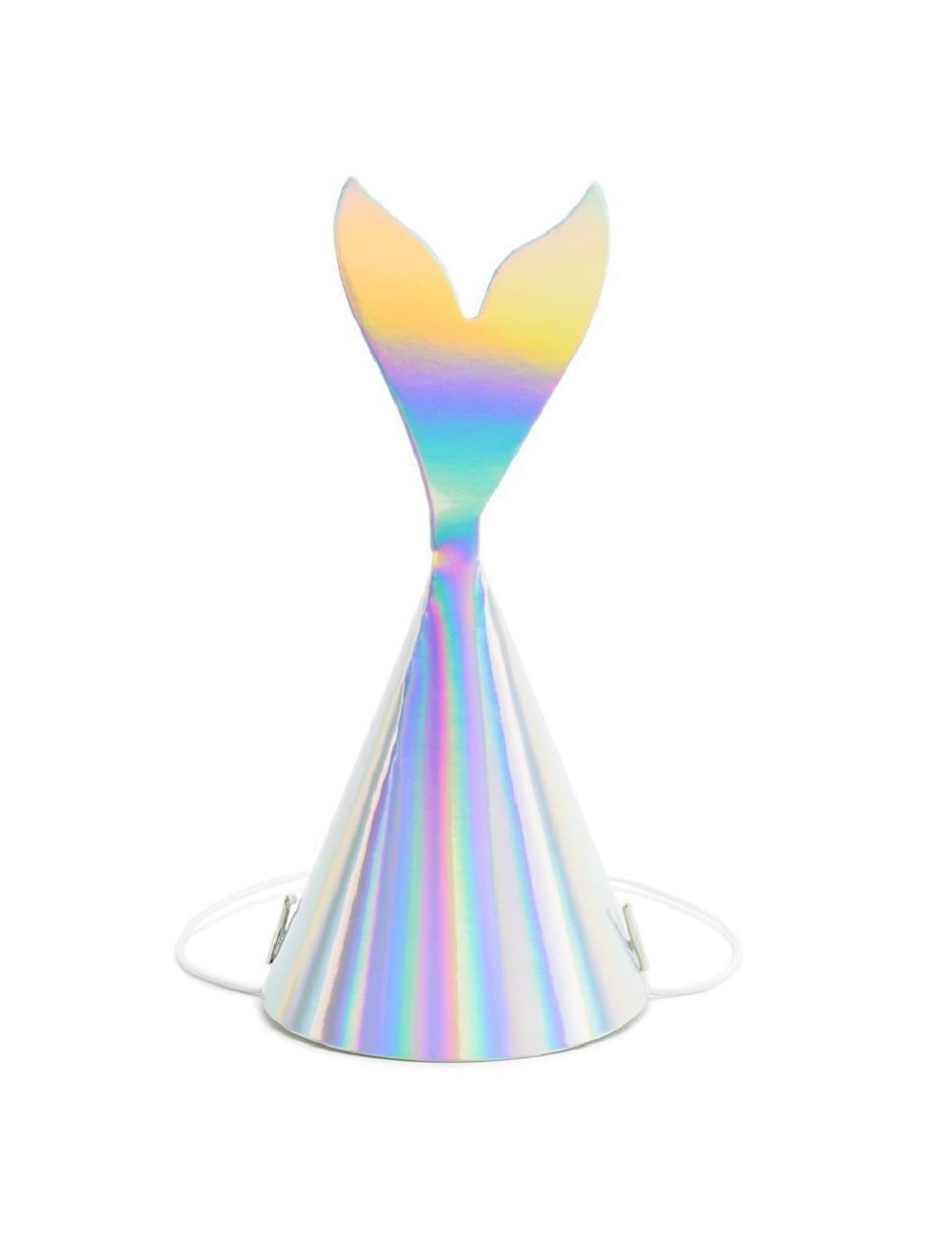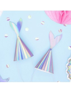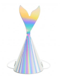 Set 6 coifuri Party Sirena, din carton argintiu - iridescent, inaltime 18 cm, prindere cu elastic sub barbie.