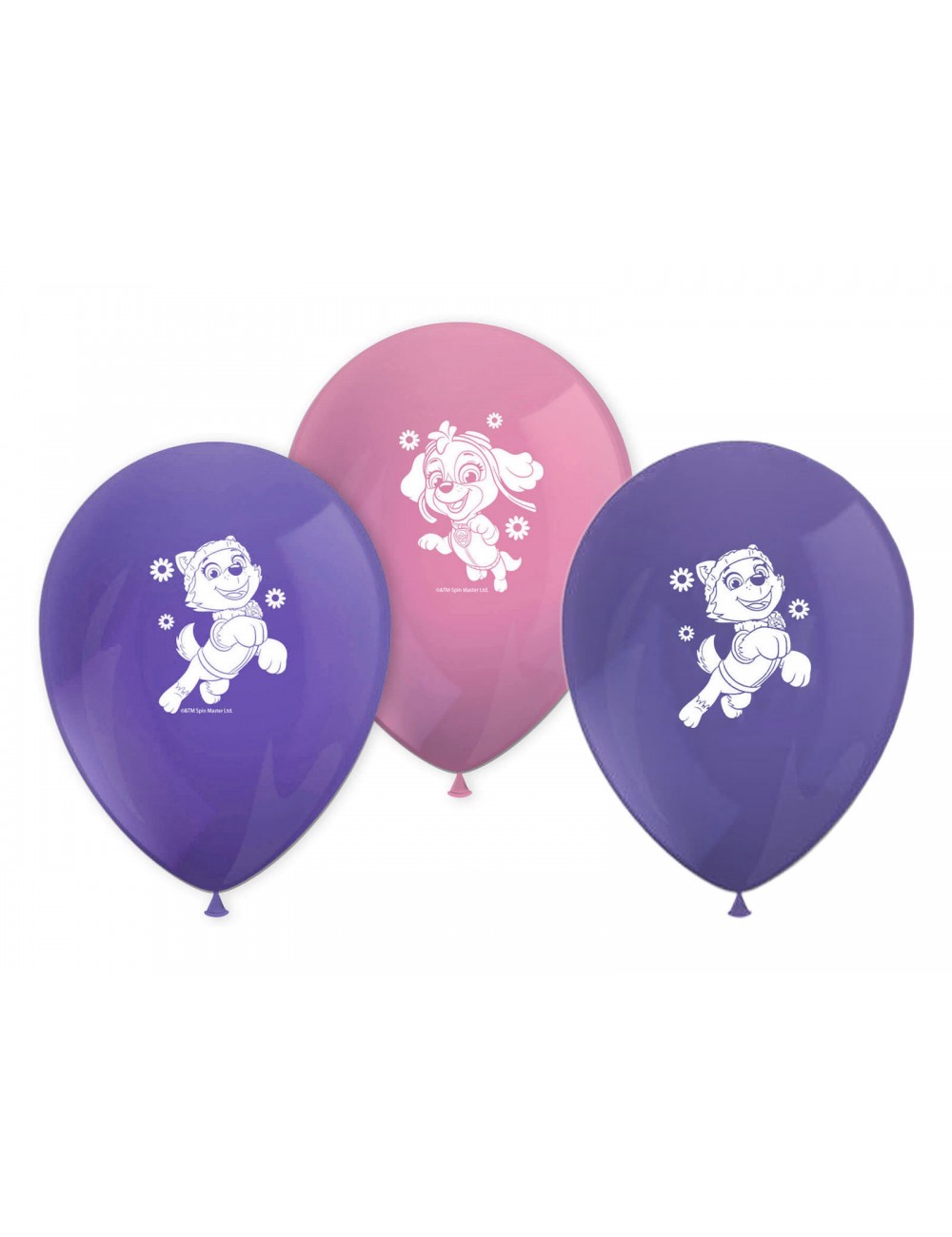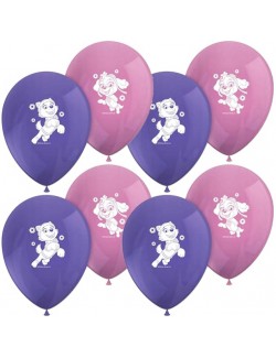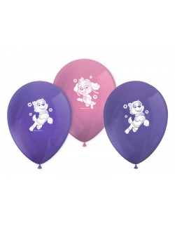 Set 8 baloane Skye si Everest -Paw Patrol, 28 cm, culori roz si mov, fabricate din cauciuc natural (latex).